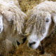 Two beautiful Cotswold sheep captured photographically in a funny and humorous moment talking to each other. Cotswold sheep originate from the Cotswolds in England and are bred for their wool and meat. They have long fleeces with an almost golden tint to it.