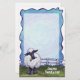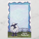 Animal Parade Sheep Personalized Stationery and Accessories brought to you by Animal Parade are for the fun side of you featuring our original art of a cute black and white sheep standing in a grassy field with a brown fence and a textured blue sky painted by our talented children's artist, Traci Van Wagoner. On many of our whimsical animal products, you’ll see the sheep coming and going with this fun artwork of the cute sheep's head on the front and the ewe's tail on the back. Join the Animal Parade and buy an entire set of matching customizable Animal Parade sheep home and office accessories today. Perfect for sheep lovers of all ages. Baa!