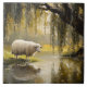 Sheep Under A Willow Tree Painting Ceramic Tile