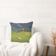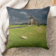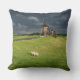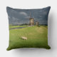 Photo cushion throw pillow with some sheep in the green grass in front of three windmills under a dark sky with rain clouds just before a spring storm in a landscape in Leidschendam, the Netherlands.