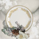 The sheer poinsettia lace design on plates is an elegant look for your table this holiday. A circle of florals and ribbons in gold, over a soft white background. Enjoy the sheer poinsettia decor on napkins, cards and more!