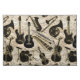 All the members of the band have come out to play on this fun music themed design that features a variety of instruments on a vintage sheet music, collage background. The trendy black and gold color palette makes an eye-catching cloth napkin. The instruments featured are: acoustic and electric guitar, saxophone, clarinet, trombone, trumpet, French horn, flute, violin, cello, and drums. Search ID481 to see other color choices and products with this pattern.