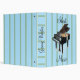 A fun way to keep all that sheet muic oraganized that is spread everywhere. This binder has light blue stripes along front, back, and spine. The front features a baby grande piano and the words sheet music. On the spine you can put your name. All text is customizable so you can change the words, font, color, or remove them completely.