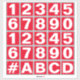 Numbers from 0 to 9. Individual numbers as stickers on a sheet. Red and white.