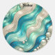 SHEKAR ~ SHINY Blue White Abstract ~ Classic Round Sticker