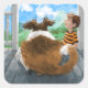 This adorable art of a boy and his dog relaxing on the porch comes from the picture book Sheldon the Sheltie's Tasty Adventure written by Dave Orinski and illustrated by Traci Van Wagoner. This sunny summer scene shares the exuberance of a boy and his dog's friendship and their relaxing calm after a fun adventure tasting the treats in the garden and orchards. Perfect for dog lovers of all ages.