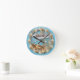 This Beach clock will look great on your wall! The design: SHELL BAY, reads: the driftwood notice on this seaside themed wall clock. 12 scallop shells fixed to a circle of rope are used in place of numerals. Beach hut effect background with shells, starfish, seahorse and fishing net decoration