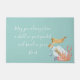 beach cottage theme design with customizable "may you always have a shell in your pocket and sand in your shoes" text in modern script white font, blue background and watercolor message in a bottle sea life graphic