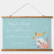 beach cottage theme wall tapestry with customizable "may you always have a shell in your pocket and sand in your shoes" text in modern script white font, blue background and watercolor message in a bottle sea life graphic