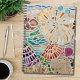This beach themed notebook is decorated with a mosaic made of shells, pebbles and colored glass.