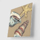 Megan Meagher is known for her simple art pieces. This is a great image of decorative art capturing the sea life with a yellow starfish and a blue and red conch shell. Get this fine art print today on Khaki color on your Zazzle product.