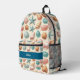 Sea shells and sea stars in blue and tan, against a light sandy background creates the perfect beach-themed backpack. Perfect for anyone who loves the ocean and beach.