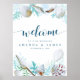 Shells and Calligraphy Blue Beach Wedding Welcome Poster