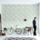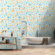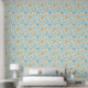 This removable wallpaper decor features a gorgeous beach or ocean theme with shells and starfish in nautical colors of gold and blue on white. Excellent for an accent wall or an entire room at home or at work.