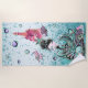 Energetically Enhanced Fantasy Whimsical Cute Girly Chic Under the Sea / at the Beach / Ocean Nautical BEACH TOWEL featuring a colorful Sweet SEA TURTLE with a Unicorn twist and a very GLAMOROUS mythical MERMAID.