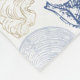 Pink gold and navy blue seashell pattern with a collection of different nautical shells on a white background.