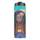 No matter the scenario, this nautical tumbler will be a great addition to your cabinet. It features a curly haired mermaid with large sunglasses, wearing a headband and starfish in her hair. To create the original piece, I used copic markers, colored pencils, and a white pastel pencil for the glare in the sunglasses and the tops of the seashells.