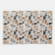Cute Shetland Sheepdog dogs sit and stand and rollover with sable, tri-color, merle and white coats with scattered dog bones and pawprints pattern.