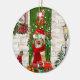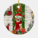 Sheltie Dog Christmas sitting outside decorated home with Christmas wreath, Christmas tree is a perfect Christmas gift idea for dog lovers.