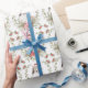 This fun Christmas wrapping paper design features a sheltie wearing a Santa hat inside a beautiful Christmas wreath.