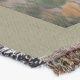 A quality printed throw has its advantages. This is a much finer weave throw than its loopier cousins, and though lighter, it is worth the investment for custom room accessorizing. The back is much prettier than the typical brown, and the fringe on the long sides very vivid, the selvage nicely done. Before photographing, I washed the throw in cold water, delicate, with a thicker woven throw the same size. On tumble dry low, this throw was dry in half the time as the other. This is a very practical quality if you use throws for furniture covers or to wrap up in frequently. The sleekness of the fabric makes it a great layer for accenting or protecting without the feeling of sitting on too much stuff. Perfect for napping or when you feel a light chill coming on. The color printing is beautiful and on this fabric, matched the design and color of my Photoshop image. This is an advantage for blending room fabrics and colors. The fringe on the short sides prints the colors from the design image and therefore varies from the side fringe. I streaked a white fractal line through the plaid pattern to give the illusion of weaving. This printed as crisp as an illusory thread, and put some white in the short side fringe, showing another advantage of print vs loomed- for artistic purposes, line lines, detail, and color integrity can be planned and preserved. My loomed throws have color limitations and more of a needlepoint texture. Print throws reproduce an exact image. The throw felt a little stiff straight out of the package, but this went away in the first delicate wash. Of course I searched the wash water for ink or bleeding and there was none.