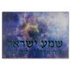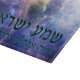 Features the opening phrase of the"Shema" prayer in Hebrew superimposed on a multi-color background reminiscent of the creation of the universe. Shema Yisrael,; "Hear, [O] Israel", are the first two words of the most important Jewish prayer. The first verse encapsulates the monotheistic essence of Judaism: "Hear, O Israel: the Lord is our God, the Lord is one," found in Deuteronomy 6:4 . Observant Jews consider the Shema to be the most important part of the prayer service in Judaism, and its twice-daily recitation as a mitzvah (religious commandment). It is traditional for Jews to say the Shema as their last words, and for parents to teach their children to say it before they go to sleep at night.