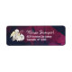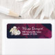Address labels designed with a sweet angel with yellow wings holding a shepherds crook. Sitting with white fluffy lambs. Navy blue and burgundy watercolor background, with tiny flecks of faux gold sparkle glitter (not actual glitter just a printed image).