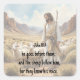 He goes before them; and the sheep follow him, for they know his voice. John 10:4. Beautiful bible scripture with a watercolor style painting of a Jesus as a shepherd with his sheep