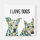 I love dogs magnet created from Chris Ambrose's one of a kind acrylic painting featuring a German shepherd shar pei mix and pitbull lab mix. Great little gift for anyone that loves dogs! Magnet can be CUSTOMIZED to add text or change background color.
