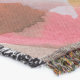 A quality printed throw has its advantages. This is a much finer weave throw than its loopier cousins, and though lighter, it is worth the investment for custom room accessorizing. The back is much prettier than the typical brown, and the fringe on the long sides very vivid, the selvage nicely done. Before photographing, I washed the throw in cold water, delicate, with a thicker woven throw the same size. On tumble dry low, this throw was dry in half the time as the other. This is a very practical quality if you use throws for furniture covers or to wrap up in frequently. The sleekness of the fabric makes it a great layer for accenting or protecting without the feeling of sitting on too much stuff. Perfect for napping or when you feel a light chill coming on. The color printing is beautiful and on this fabric, matched the design and color of my Photoshop image. This is an advantage for blending room fabrics and colors. The fringe on the short sides prints the colors from the design image and therefore varies from the side fringe. I streaked a white fractal line through the plaid pattern to give the illusion of weaving. This printed as crisp as an illusory thread, and put some white in the short side fringe, showing another advantage of print vs loomed- for artistic purposes, line lines, detail, and color integrity can be planned and preserved. My loomed throws have color limitations and more of a needlepoint texture. Print throws reproduce an exact image. The throw felt a little stiff straight out of the package, but this went away in the first delicate wash. Of course I searched the wash water for ink or bleeding and there was none.