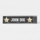 I was very pleased when I received my name plate. The brightness of the yellow caught my eye immediately because it was so true to color of the picture. The sturdiness of the material lets me know it won’t get bent or broken easily. The sturdiness of the card stock is a plus as well. The colors even on the chalkboard and apple are true to life colors. The apple looks like you can take a bite out of it.