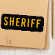 Sheriff Patch. Black with bold gold letters and black outer edge sticking. This sheriff id patch is a perfect identification patch for tactical vests, jackets and uniforms so you will be clearly identified as a law enforcement officer. See our collection for police patches and personalized id patches. Choose from iron-on, velcro or adhesive. COPYRIGHT © 2020 Judy Burrows, Black Dog Art - All Rights Reserved. Sheriff Patch