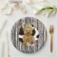 Sheriff Teddy Bear and Star Badge faux wood birthday party or baby shower small cake paper plates.