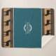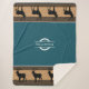 This warm and cozy Sherpa blanket is shown in a rich teal-blue with chocolate brown, tan, charcoal and gray printed border on each end. Yellowstone text in center with logo and several elk walking across the borders complete the look.