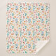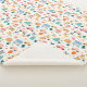 A white blanket with colorful, cute cartoon houses, cars, plants, and floral patterns with pastel colors on a bright background, a print fabric design for babies and children, a clean and fresh style, suitable for a baby gift