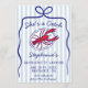 Celebrate your bride-to-be in true coastal style with this charming “She’s A Catch” 3-Day Itinerary Bachelorette Party Invitation, designed for seaside getaways, nautical-themed celebrations, and unforgettable girls’ weekends. Inspired by classic New England summers, this invitation features soft blue stripes, a bold navy frame, and an adorable hand-drawn red lobster that brings a fun, nautical twist to the celebration.