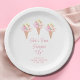 This ice cream-themed bridal shower paper plate is decorated with watercolor florals and ice cream cones.