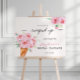 Elegant calligraphy pink floral ice cream themed bridal shower welcome sign "She's been scooped up".