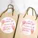 The sticker is made on wonderful paper and had no problem sticking to the bag that I purchased to put it on. I wanted to find a design that would be cute for the bride and groom and this one fit the bill as it has cute "bees" buzzing around and the wedding was taking place in a town called "Bee Cave". The packaging was great and protected the stickers. The website is easy to navigate and there are so many color choices. I had no problem finding a color that the bride was using on everything else selected. The design was adorable and there were many to choose from. You can make the figure as larger or smaller and you can place the photo and writting whereever you want to in the sticker. The printing is fabulous..better than expected.