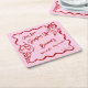 She's been scooped up wavy border sketch bridal shower monogrammed printed paper coasters template, ice cream with a cherry on top wavy border ribbon coquette bridal shower personalized name coasters, personalized bridal shower favors, red and pink coquette bridal shower paper coasters, handrawn bridal shower personalized table decor