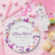 These fun bridal shower paper plates are perfect for women who love horses and horseback riding with equestrian themed graphics and pretty floral accents in shades of purple, lavender, magenta and peach. They feature the funny "Getting Hitched" slogan and your custom text in purple lettering.