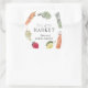 This cute "She's off the market" farmer's market bridal shower sticker features a white background with vegetables and fruits in watercolor. Personalize for your needs. You can find matching products at my store.