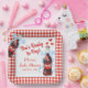 Celebrate the mom-to-be in sweet retro style with this She’s Ready to Pop Baby Shower design, featuring a charming red gingham background paired with a cute soda bottle illustration accented with a blue coquette bow. Inspired by the playful and nostalgic “Ready to Pop” baby shower theme, this design brings a fun and cheerful touch to your baby shower celebration.