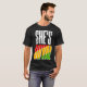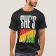 My 11 yo wore adult XL (5’7” 165#). The 8yo is small framed. She wore adult small and tied it in the back. Grandma wore adult large with long sleeve shirt underneath. Tall girl adult medium. Dark haired male adult large. Good quality dark Heather gray, Gildan brand shirt. -it was next up from basic choice and cost about $20 per shirt. Not too thick or thin. Washed and dried well, no major shrinkage. Not see-through. Can wear a bra under it fine. Screen print is just as shown and well done, front and back.