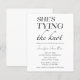 Celebrate the upcoming nuptials with our "She's Tying the Knot" Minimalist Black & White Bridal Shower Invitation. This elegant design features a chic and modern aesthetic, perfect for setting the tone for an unforgettable celebration. The clean lines and timeless color palette make it a sophisticated choice for any bridal shower. Designed by CaMiDesigns, this invitation will surely impress your guests and create excitement for the special day ahead.