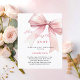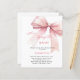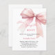 An elegant white background, decorated with a pink colored bow. Personalize and add a name and party details.