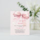 An elegant soft pink background, decorated with a pink colored bow. Personalize and add a name and party details.