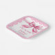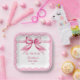 She's tying the knot Pink bow coquette bridal shower printed paper plates template personalized bridal shower tableware decor pink vintage lace border and a retro bow