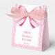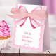 She's tying the knot Pink bow coquette bridal shower printed personalized favor box pink vintage lace border and a retro bow bridal shower favors