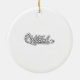 Lightweight, smooth, pure white ornament with nice sheen. Perfect size to be seen from across the room ... and to attract closer inspection! Price was great for ordering enough for the whole family! Clear, bold black design just as requested. Matches the order exactly. Just so nice!